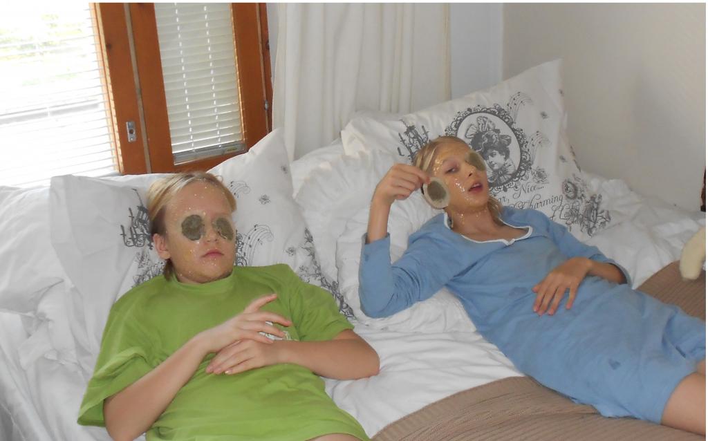 Pidettiin Pepin kanssa IHANA kauneudenhoitoilta. Tehtiin itse hius-, kasvo-, käsi- sekä jalkanaamiot ja teepussit silmille!